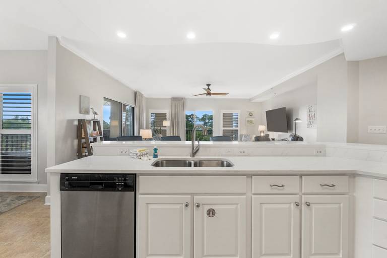 Panhandle Getaways furnishes a few essential items for guests to utilize until they can get to the grocery store. Initial Supplies include: Dishwasher soap, small washing machine powder, each bathroom has amenities (like hotel but NOT restocked) shampoo, conditioner, soap bar. One roll of toilet paper in each bathroom & one paper towel roll in the kitchen. All bed linens and towels are provided. We encourage guests to bring beach towels for use at the pool and beach.