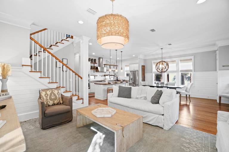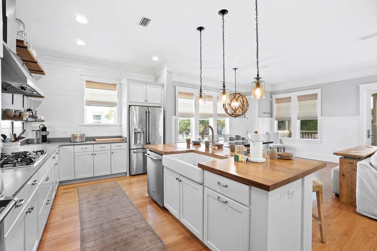 This home is the perfect place to spend your next beach vacation. This beach home is well suited for families of all sizes with its large floor plan and gorgeous fully equipped kitchen.There is plenty of room for gathering while meals are prepared as the open floor plan allows for easy sight into the living area.
