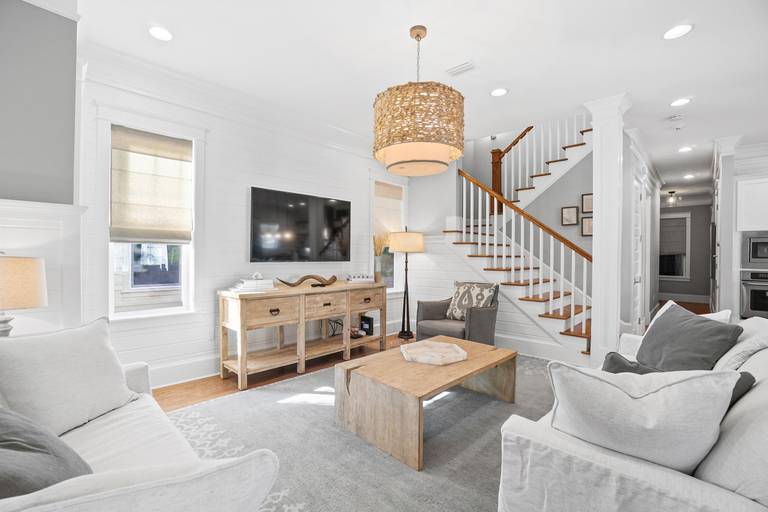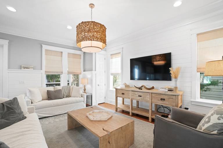 Prominence 30A beach house rental, Blue Whale Bungalow in Watersound, Florida by Panhandle Getaways is a 3 bedroom plus bonus room, 3.5 bathroom beach house rental complete with all of the conveniences of home. GOLF CART INCLUDED FOR USE DURING YOUR STAY!