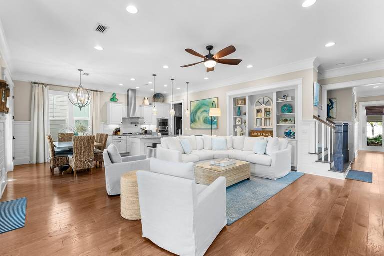 Prominence 30A beach house rental, Flip Flop Inn, located in Watersound, FL by Panhandle Getaways is a 5 bedroom, 4.5 bathroom vacation home complete with all of the conveniences of home. Golf Cart - 6 Seater Included