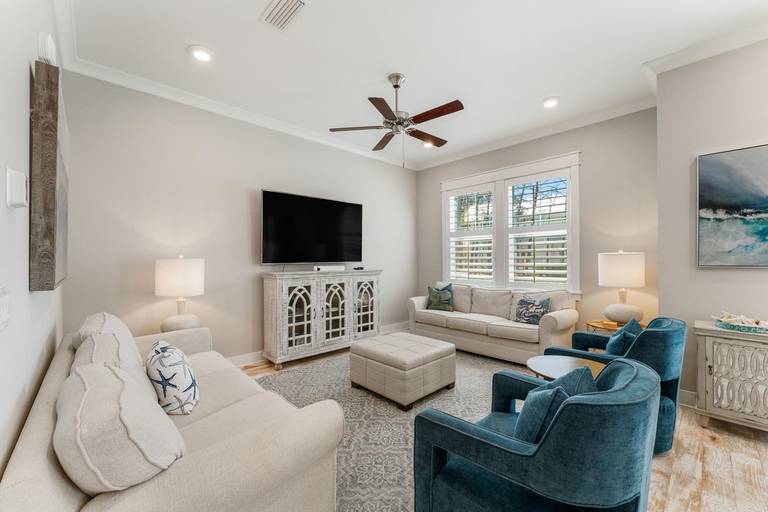 Prominence 30A pet friendly rental, Just One Life, located in Watersound, Florida by Panhandle Getaways is a 3 bedroom, 2.5 bathroom vacation home complete with all of the conveniences of home. Golf cart included with your stay.