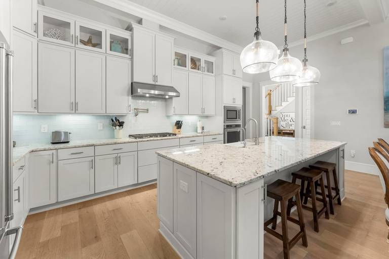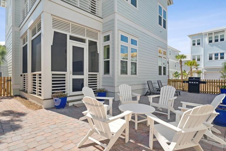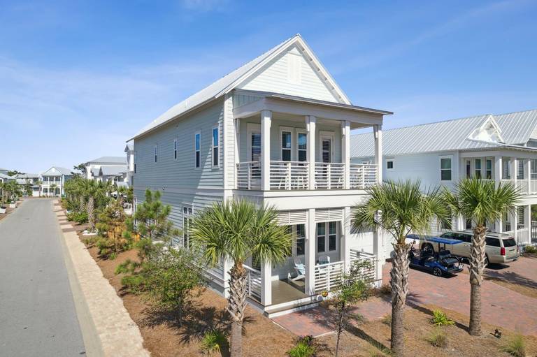 Prominence 30A beach house rental, WineDown, in Watersound, FL by Panhandle Getaways is a 4 bedroom, 4.5 bathroom vacation home and is complete with all of the conveniences of home. Gulf View, Golf Cart Included with Stay.