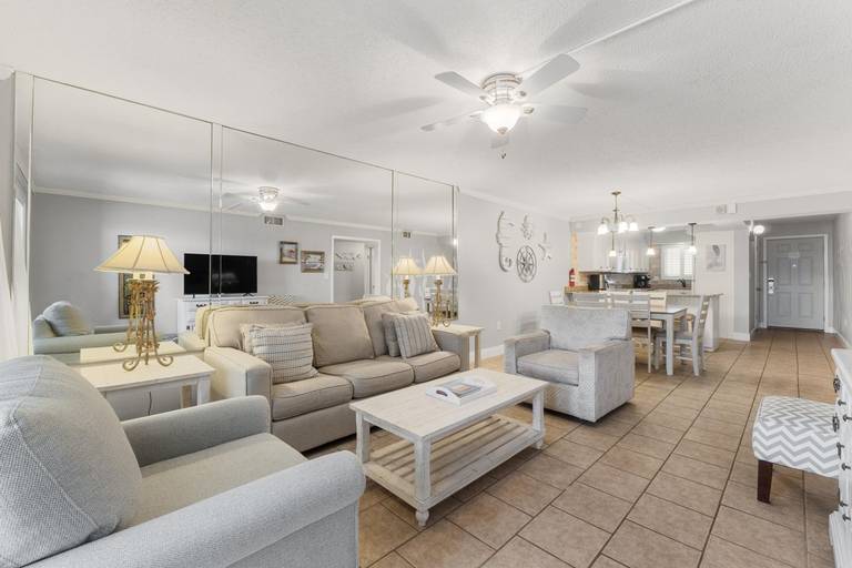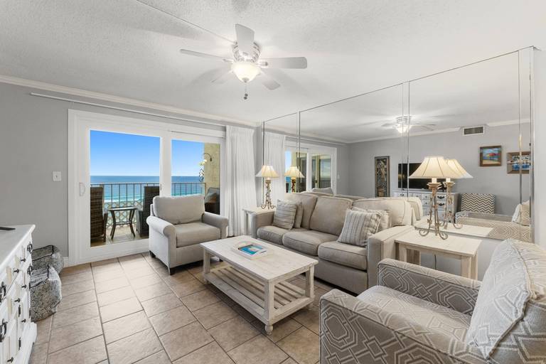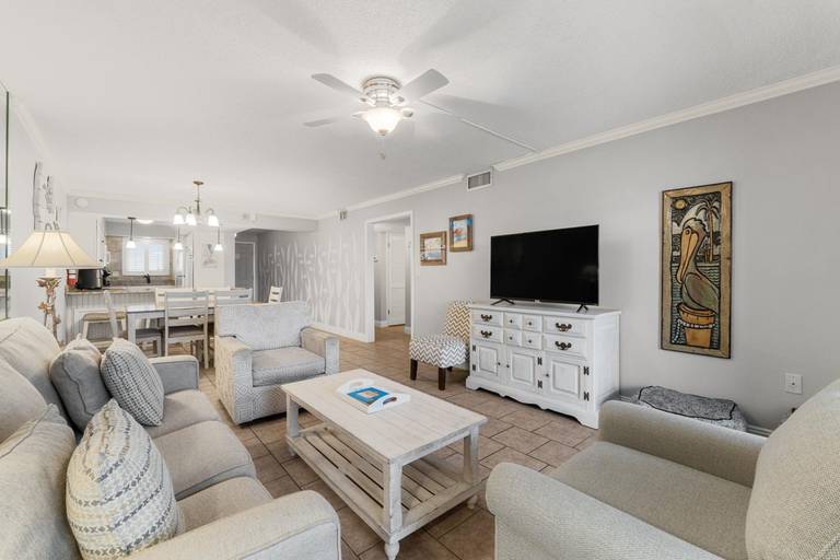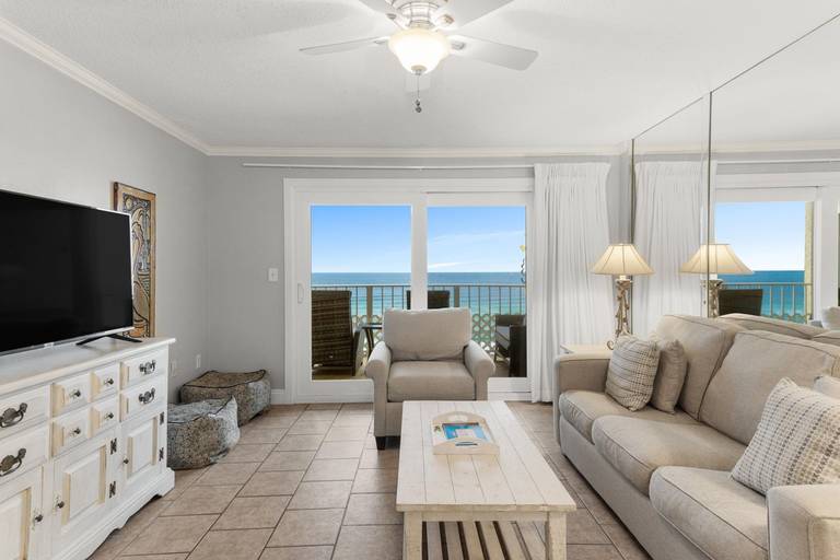 * Spacious Living Area with Gulf Views, 50" TV and Queen Sleeper Sofa
