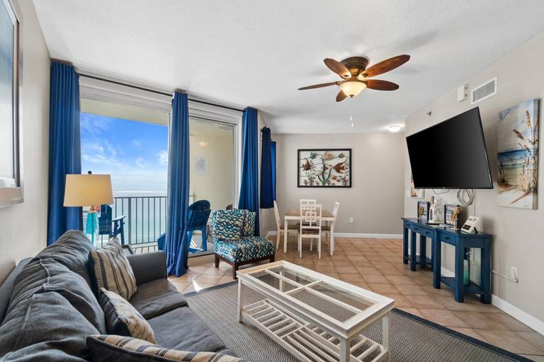 Shores of Panama Resort rental 1210 located in Panama City Beach, FL by Panhandle Getaways is a 1 bedroom plus bunk area, 1.5 bathroom beachfront vacation home complete with all of the conveniences of home.