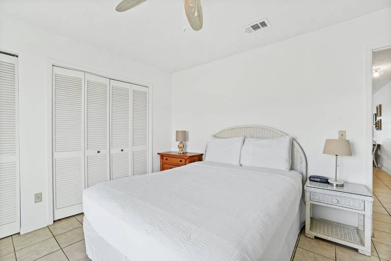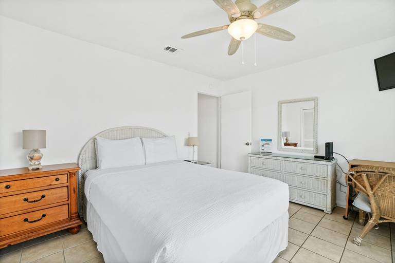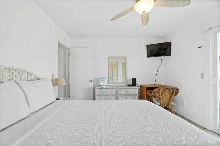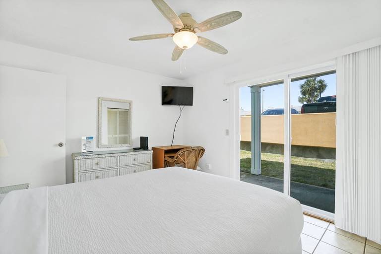 * Bedroom - Queen Bed, TV, Private Patio Access