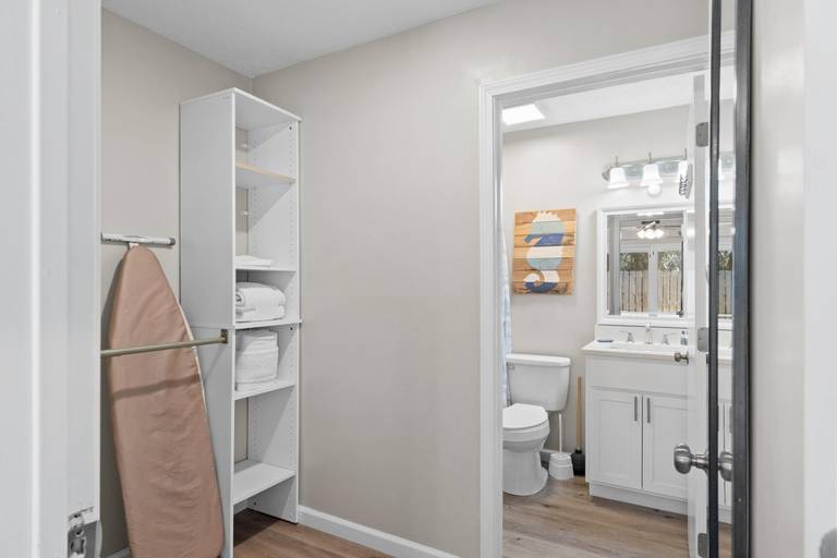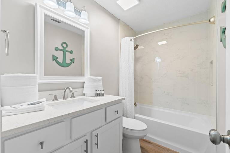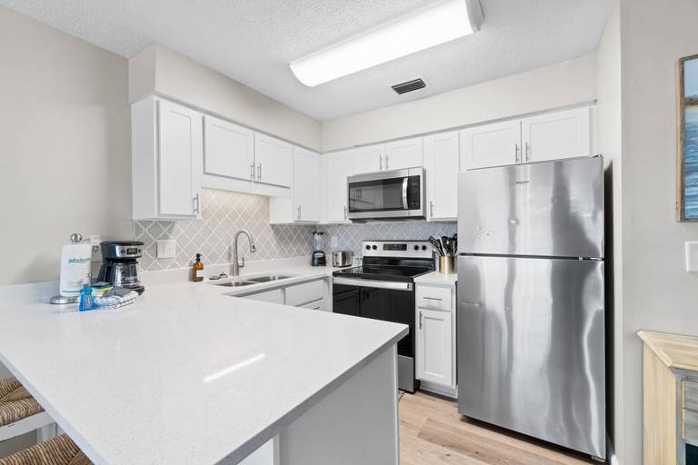 Panhandle Getaways furnishes a few essential items for guests to utilize until they can get to the grocery store. Initial Supplies include: Dishwasher soap, small washing machine powder, each bathroom has amenities (like hotel but NOT restocked) shampoo, conditioner, soap bar and body wash. One roll of toilet paper in each bathroom & one paper towel roll in the kitchen.