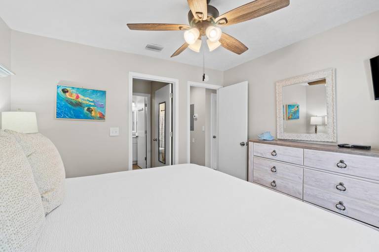* Bedroom 1 - King Bed, TV, Patio Access, En Suite Bathroom