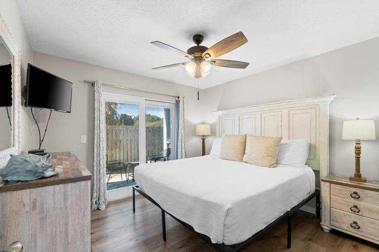* Bedroom 2 - Queen Bed, TV, Patio Access
