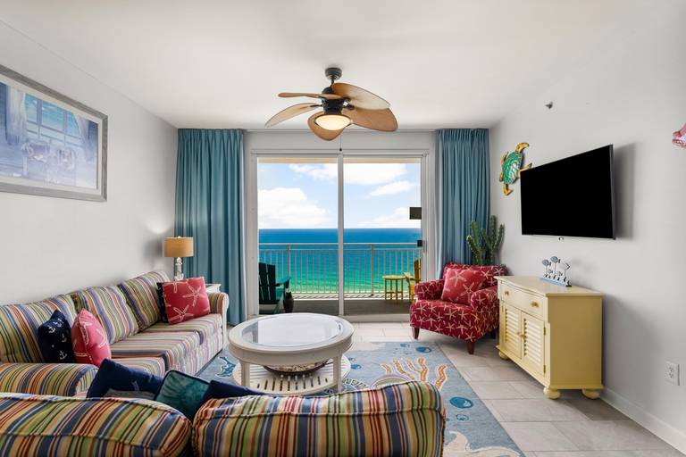 * Living Area - Gulf View, 55" TV, Balcony Access