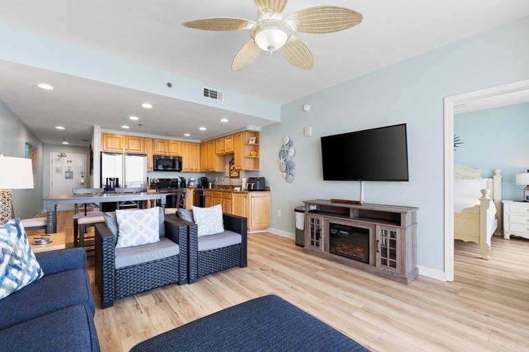 * Living Area - Gulf View, 55" TV, Balcony Access