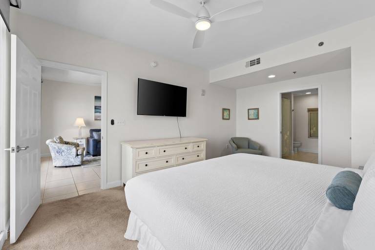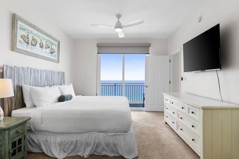 * Bedroom 1 - Gulf View, King Bed, 30" TV, Balcony Access, En Suite Bathroom