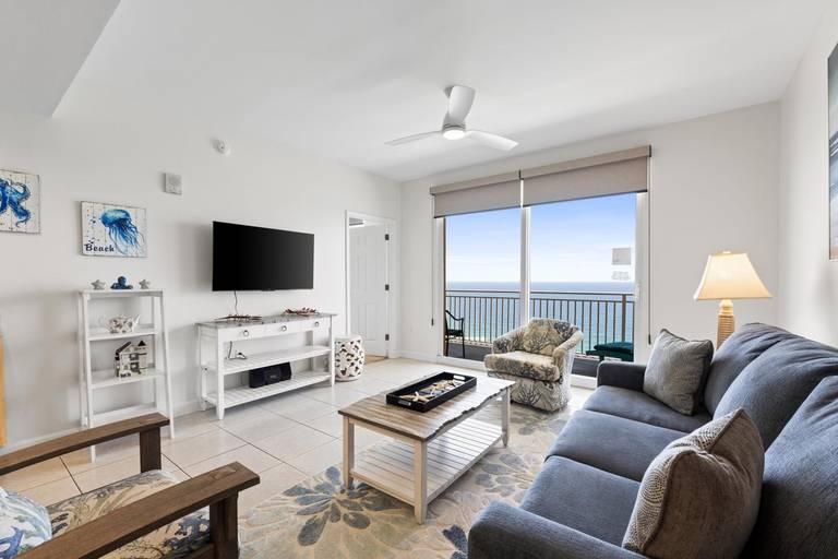 * Living Area - Gulf View, 55" TV, Balcony Access