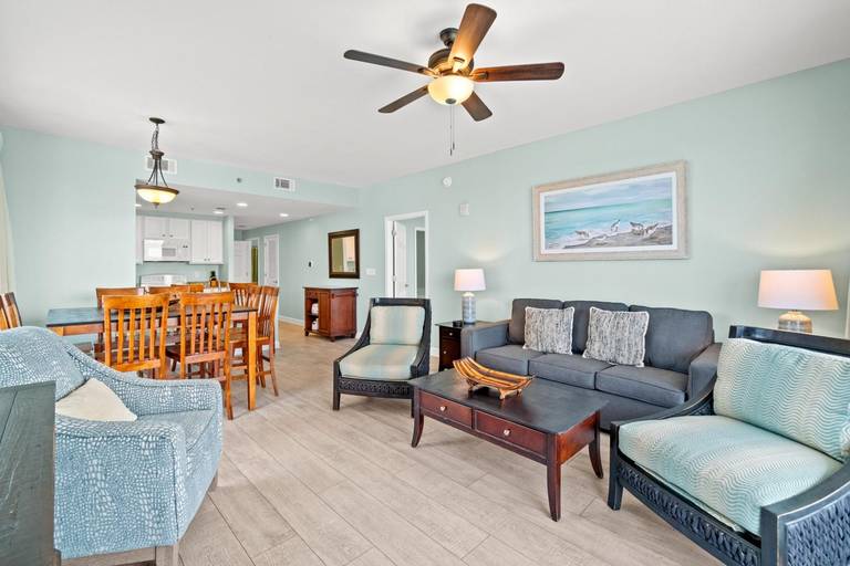 * Living Area - Gulf View, 65" TV, Balcony Access
