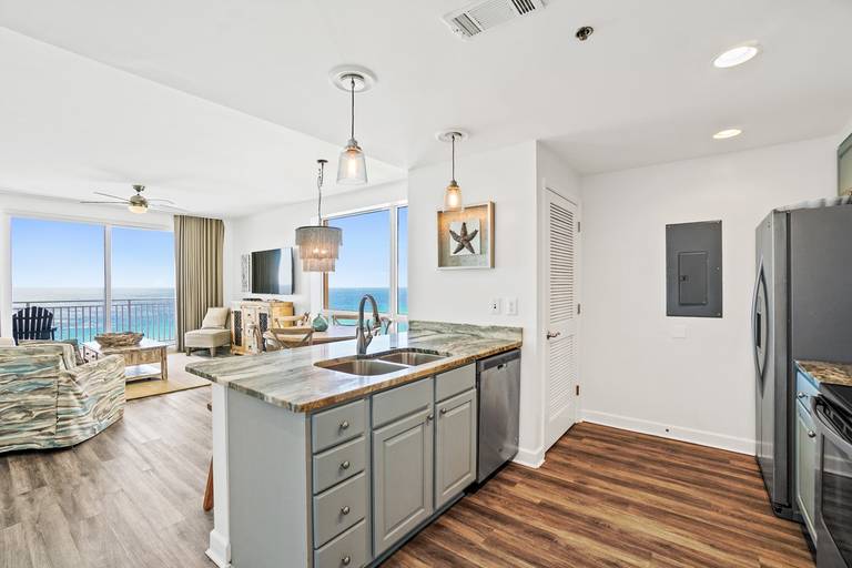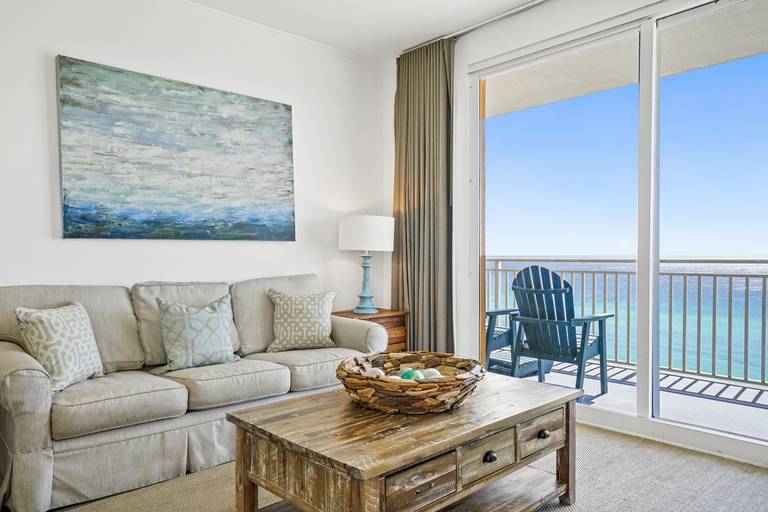 Splash Beach Resort condo rental 801W-B in Panama City Beach by Panhandle Getaways is a 2 bedroom, 2 bathroom direct beachfront vacation home complete with all of the conveniences of home. GULF FRONT MASTER SUITE and 2nd gulf front bedroom.