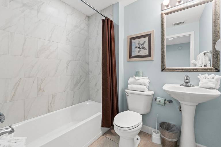 Panhandle Getaways furnishes a few essential items for guests to utilize until they can get to the grocery store. Initial Supplies include: Dishwasher soap, small washing machine powder, each bathroom has amenities (like hotel but NOT restocked) shampoo, conditioner, soap bar and body wash. One roll of toilet paper in each bathroom and one paper towel roll in the kitchen.