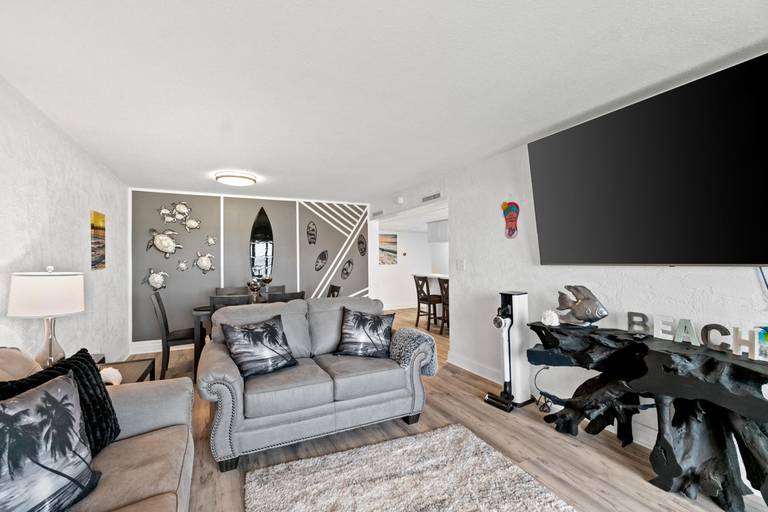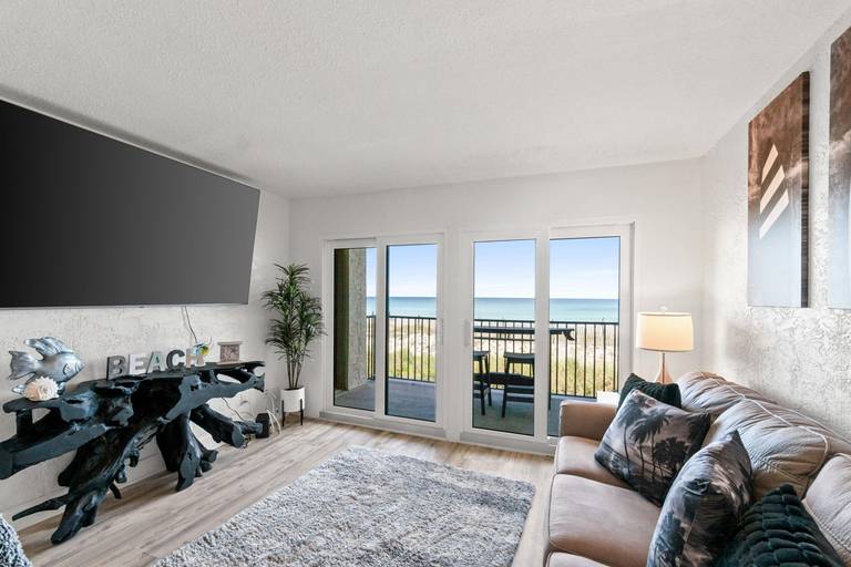 * Living Area with Gulf Views, 70" Smart TV, Queen Sleeper Sofa