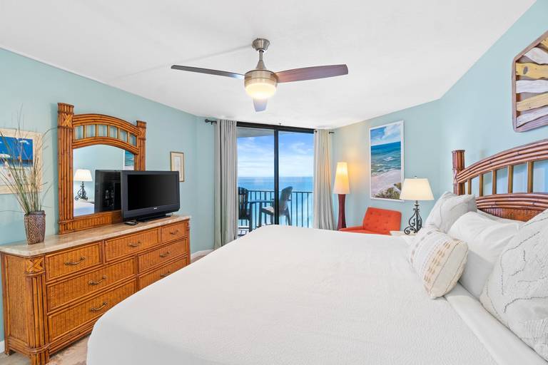 * Bedroom 1 - King Bed, Gulf View, 25" TV, En Suite Bathroom