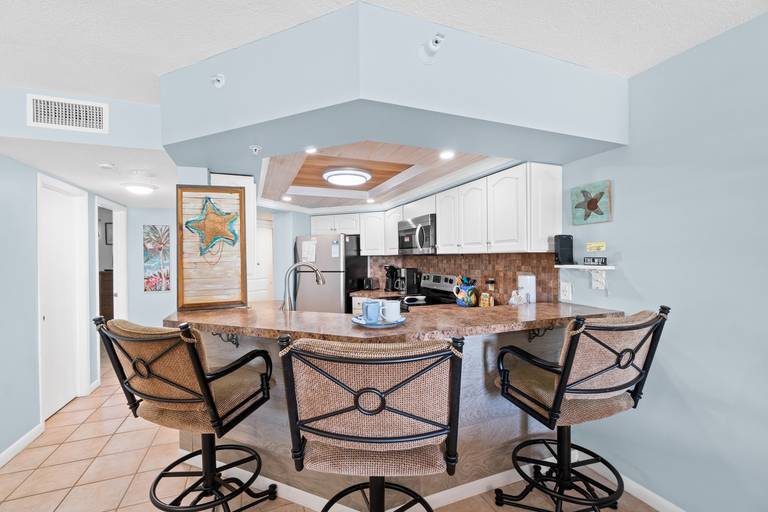 Panhandle Getaways furnishes a few essential items for guests to utilize until they can get to the grocery store. Initial Supplies include: Dishwasher soap, small washing machine powder, each bathroom has amenities (like hotel but NOT restocked) shampoo, conditioner, soap bar and body wash. One roll of toilet paper in each bathroom & one paper towel roll in the kitchen. All bed linens & towels are provided. We encourage guests to bring beach towels for use at the pool and beach.