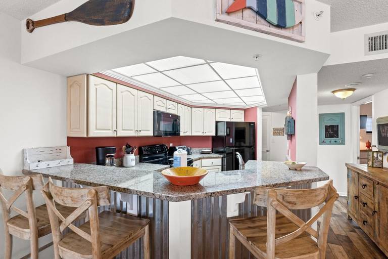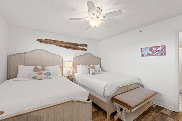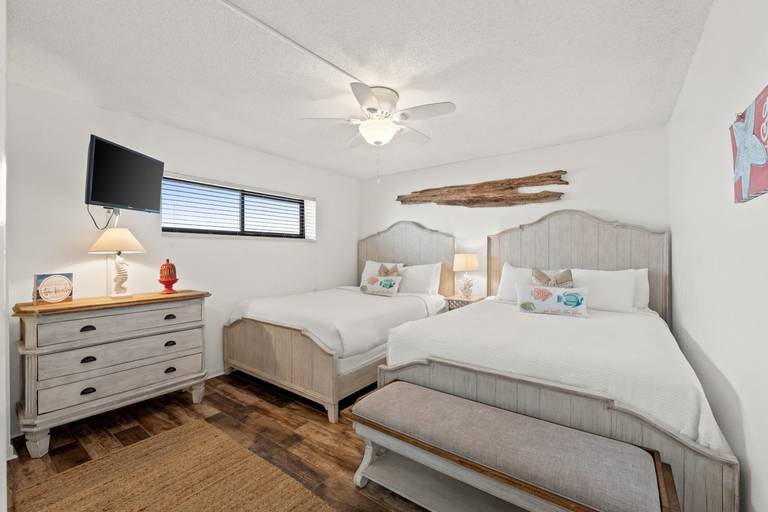 This tastefully decorated, 2-bedroom 2-bath condo has all the comforts of home. It includes a master bedroom with a king-size bed, a private master bath, a guest bedroom with 2 queen beds and its own bathroom.