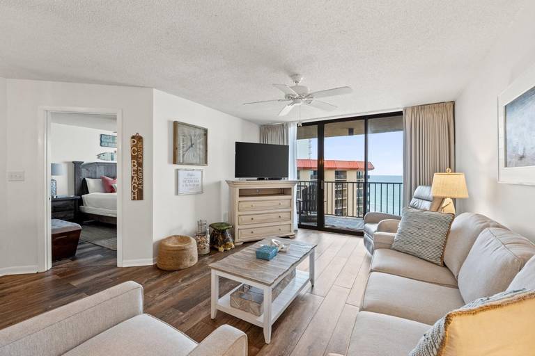 Our Summerhouse Beach Condo is a beachfront vacation home with stunning views. Come enjoy breath-taking views of the pure white beaches of the Gulf of America from your private balcony with a large sliding glass door leading to a spacious living room.
