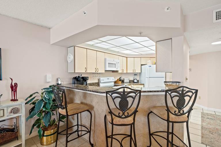 Panhandle Getaways furnishes a few essential items for guests to utilize until they can get to the grocery store. Initial Supplies include: Dishwasher soap, small washing machine powder, each bathroom has amenities (like hotel but NOT restocked) shampoo, conditioner, soap bar and body wash. One roll of toilet paper in each bathroom & one paper towel roll in the kitchen. All bed linens & towels are provided. We encourage guests to bring beach towels for use at the pool and beach.