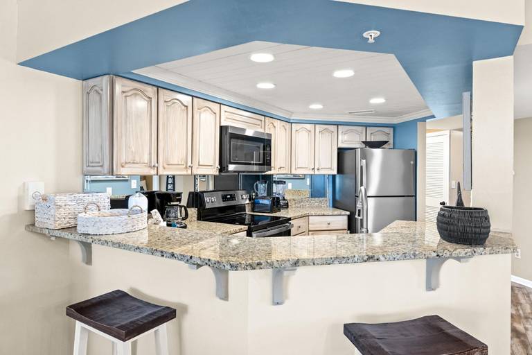 Panhandle Getaways furnishes a few essential items for guests to utilize until they can get to the grocery store. Initial Supplies include: Dishwasher soap, small washing machine powder, each bathroom has amenities (like hotel but NOT restocked) shampoo, conditioner, soap bar and body wash. One roll of toilet paper in each bathroom & one paper towel roll in the kitchen. All bed linens & towels are provided. We encourage guests to bring beach towels for use at the pool and beach.