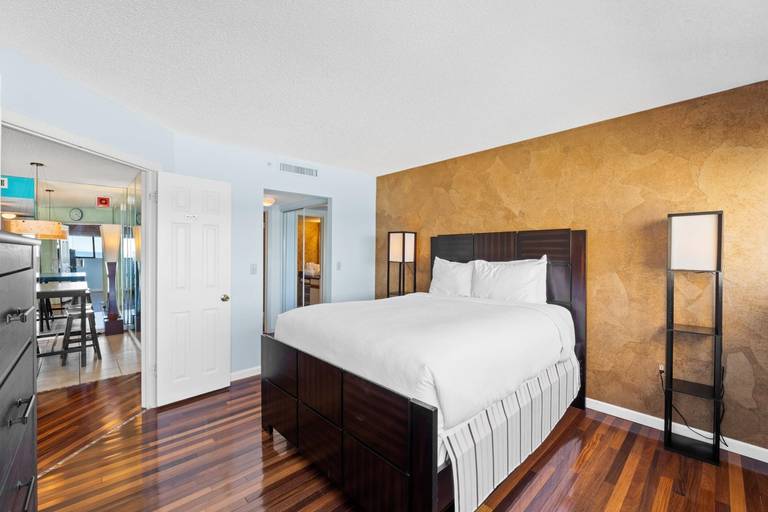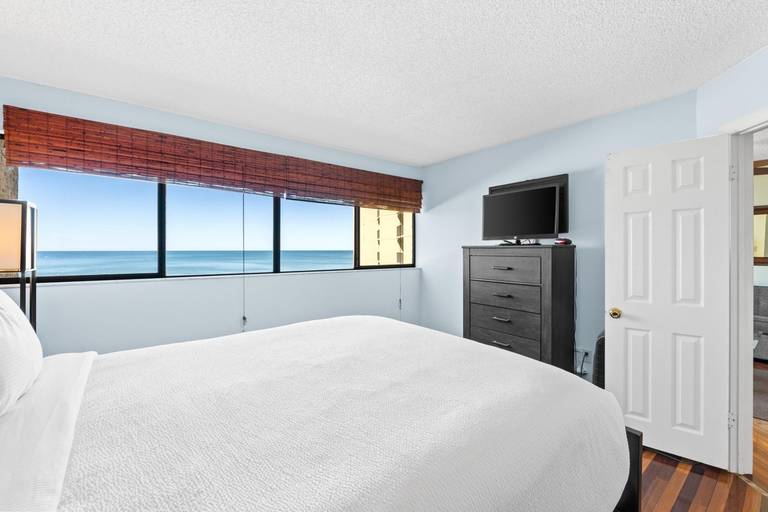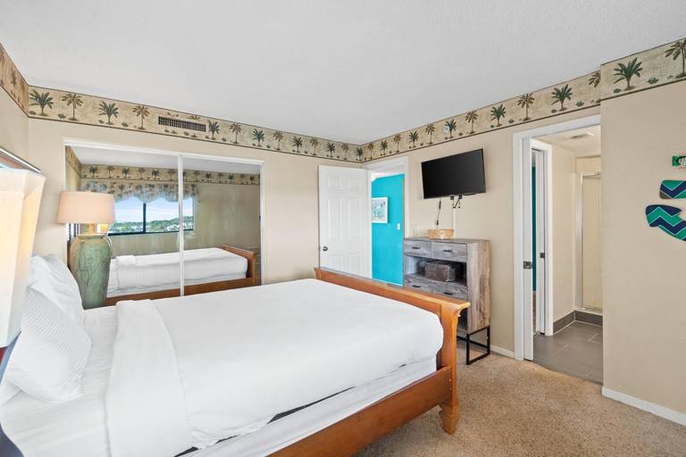 * Bedroom 1 - Queen Bed, Gulf View, 34" TV, En Suite Bathroom