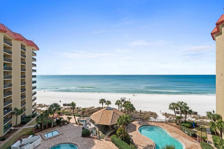 Located directly on the Gulf of Mexico, Summerhouse features two-bedroom, two-bath units, each with a balcony overlooking the gulf waters. Summerhouse is found on the east end of PCB, convenient to all the action the coastal town offers. Guests have full access to a wide range of amenities that include two gulf front pools, gazebo, hot tub, jet ski rentals and more beach services, pickleball and tennis courts, beach volleyball, and so much more. From Memorial Day through August, Summerhouse hosts summer movies under the stars, live music, karaoke, face painting for the kids, all sure to enhance your time spent there. The resort also has beach wheelchairs available for those who may need them.