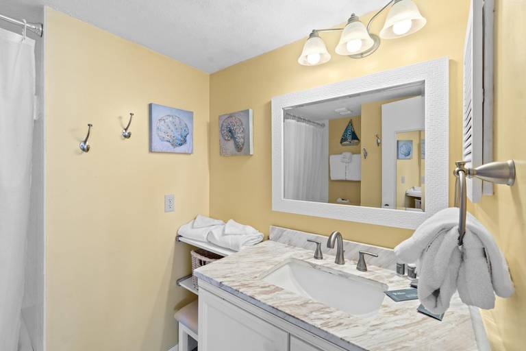Panhandle Getaways furnishes a few essential items for guests to utilize until they can get to the grocery store. Initial Supplies include: Dishwasher soap, small washing machine powder, each bathroom has amenities (like hotel but NOT restocked) shampoo, conditioner, soap bar and body wash. One roll of toilet paper in each bathroom & one paper towel roll in the kitchen. All bed linens & towels are provided. We encourage guests to bring beach towels for use at the pool and beach.