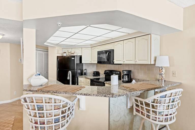 Panhandle Getaways furnishes a few essential items for guests to utilize until they can get to the grocery store. Initial Supplies include: Dishwasher soap, small washing machine powder, each bathroom has amenities (like hotel but NOT restocked) shampoo, conditioner, soap bar and body wash. One roll of toilet paper in each bathroom & one paper towel roll in the kitchen. All bed linens & towels are provided. We encourage guests to bring beach towels for use at the pool and beach.