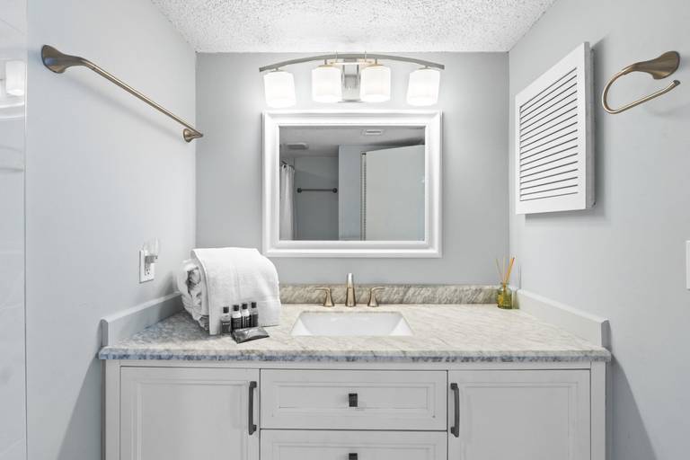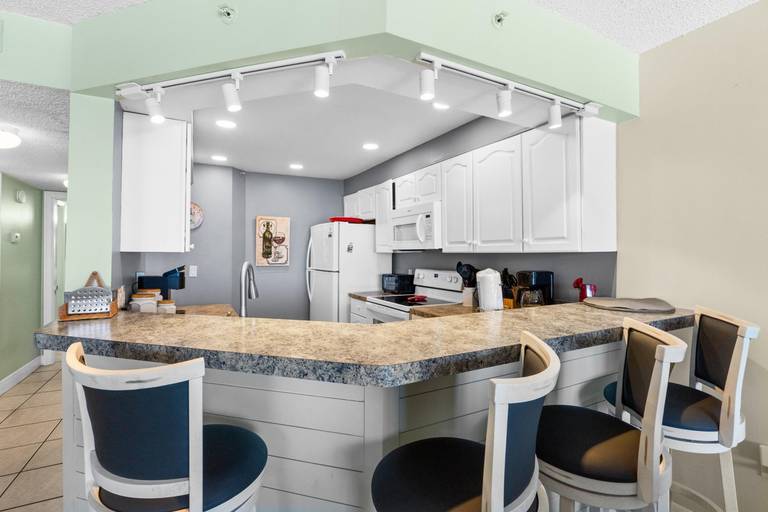 Panhandle Getaways furnishes a few essential items for guests to utilize until they can get to the grocery store. Initial Supplies include: Dishwasher soap, small washing machine powder, each bathroom has amenities (like hotel but NOT restocked) shampoo, conditioner, soap bar and body wash. One roll of toilet paper in each bathroom & one paper towel roll in the kitchen. All bed linens & towels are provided. We encourage guests to bring beach towels for use at the pool and beach.
