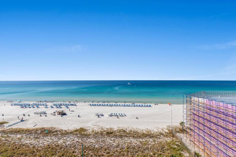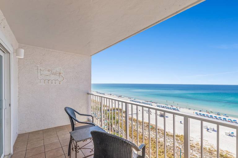 Summit Beach Resort 902 by Panhandle Getaways is a beachfront condo in Panama City Beach, FL, featuring beautiful Gulf views from a private balcony and resort amenities including pools, hot tubs, a tiki bar, and direct beach access.