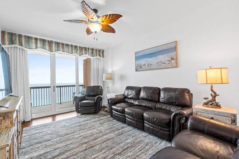 * Living Area - Gulf View, 65" TV, Balcony Access