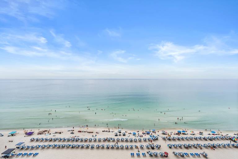 Tidewater Beach Resort has impressive amenities: two 4,200 square foot outdoor lagoon pools with hot tubs, a heated indoor pool, a state-of-the-art fitness center with Roman Spa, steam room and sauna, theater-style movie/media center, arcade/game room, restaurant, coffee shop and tiki bar. Best of all, Tidewater Beach Resort is just a quick walk or bike ride away from City Pier (great for fishing and marine life watching) and Pier Park, the entertainment, shopping and dining hub of West Panama City Beach and beyond!