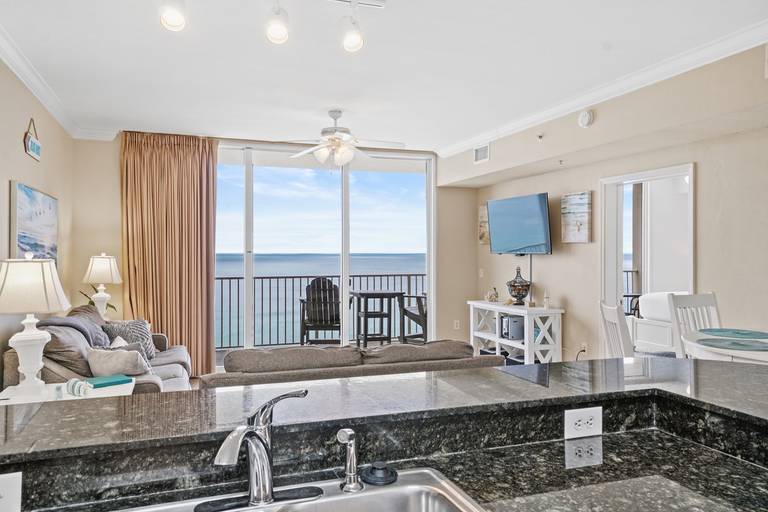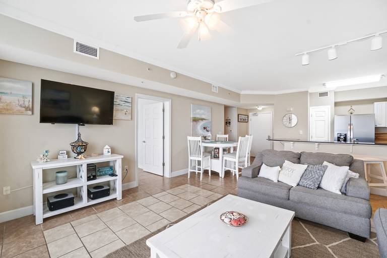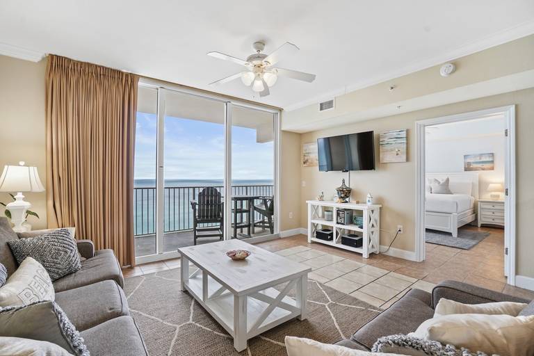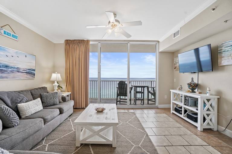 * Living Area - Gulf View, 60" Smart TV, Balcony Access