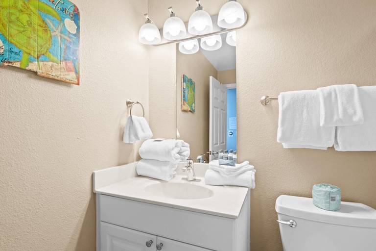 Panhandle Getaways furnishes a few essential items for guests to utilize until they can get to the grocery store. Initial Supplies include: Dishwasher soap, small washing machine powder, each bathroom has amenities (like hotel but NOT restocked) shampoo, conditioner, soap bar. One roll of toilet paper in each bathroom and one paper towel roll in the kitchen. All bed linens and towels are provided. We encourage guests to bring beach towels for use at the pool and beach.