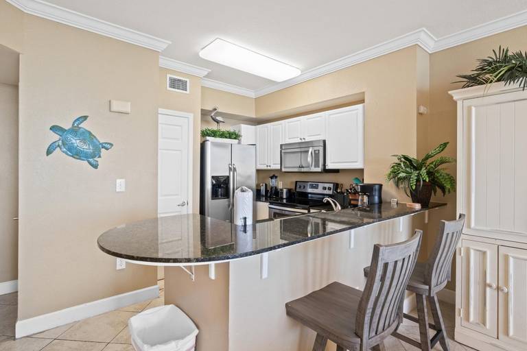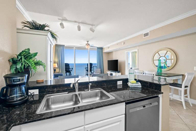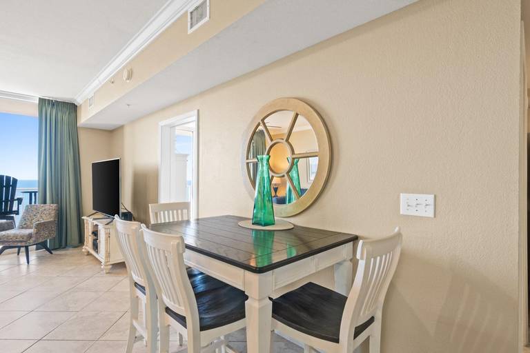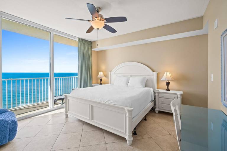 Tidewater Beach Resort has impressive amenities: two 4,200 square foot outdoor lagoon pools with hot tubs, a heated indoor pool, a 4,300 square foot state-of-the-art fitness center with Roman Spa, steam room and sauna, a theater-style movie/media center, a game arcade, restaurant, coffee shop and tiki bar. Best of all, the building is only a short walk or bike ride away from City Pier(great for fishing and marine life watching) and Pier Park.