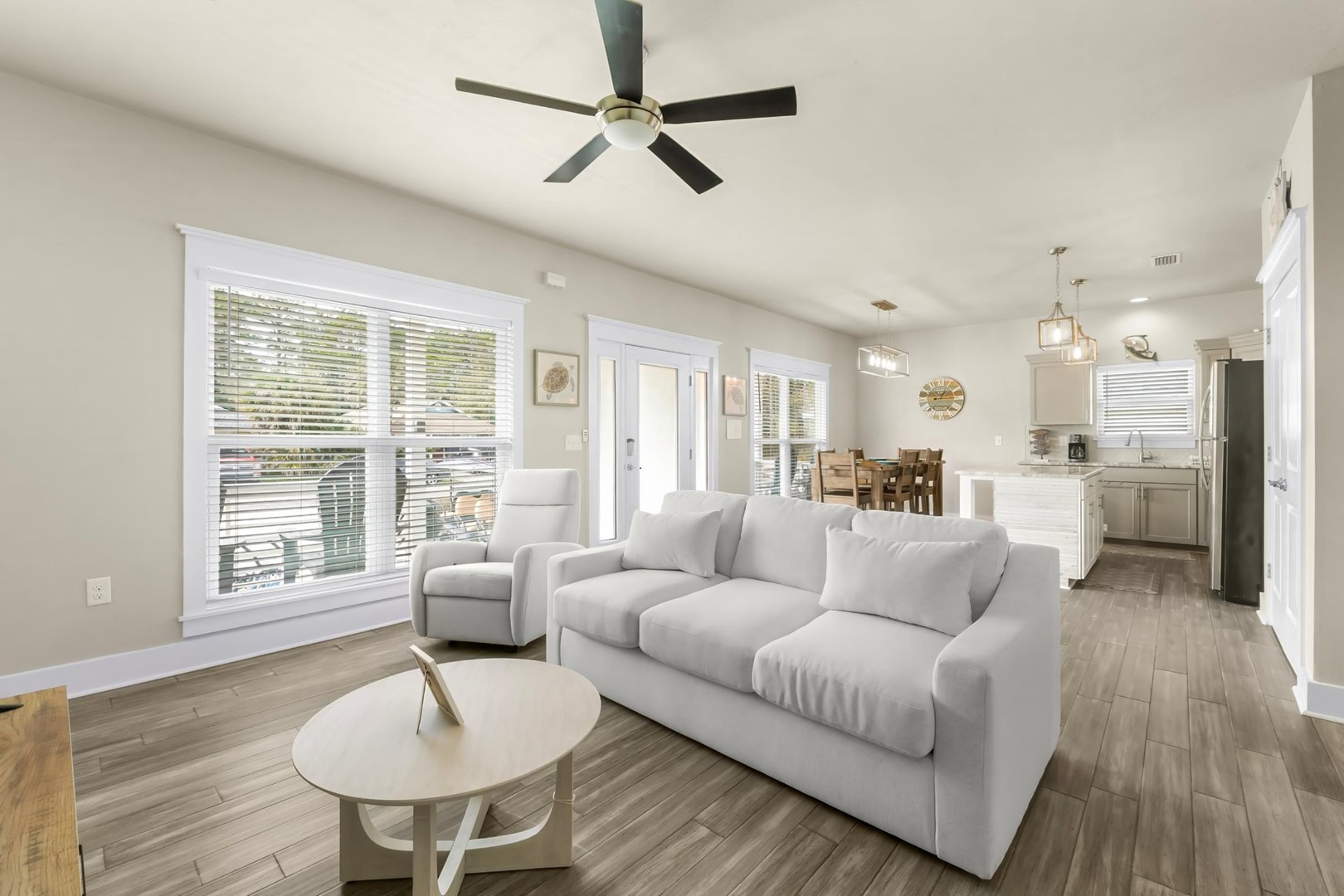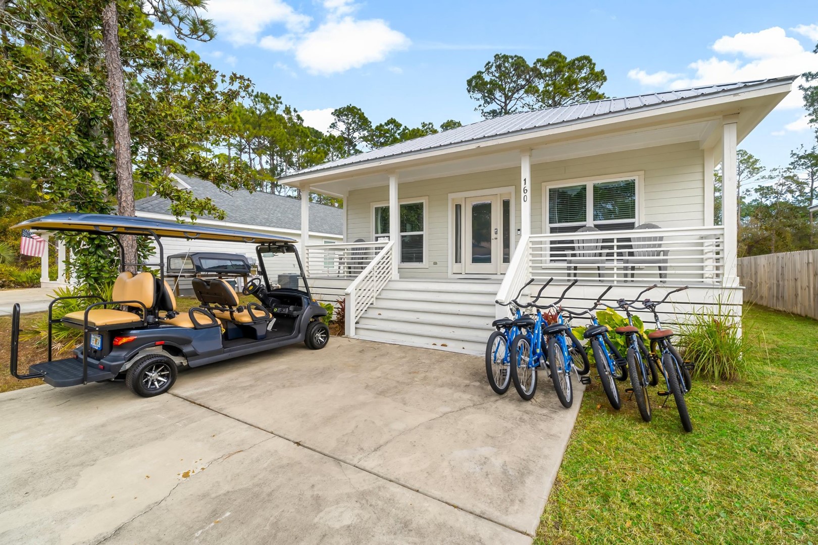 30A Beach House rental, Beach Bayou, located in Santa Rosa Beach, FL by Panhandle Getaways is a pet friendly 3 bedroom, 2 bathroom home complete with all of the conveniences of home. Golf Cart and 4 Bikes Included. This home is close to the bay with boat launch nearby.