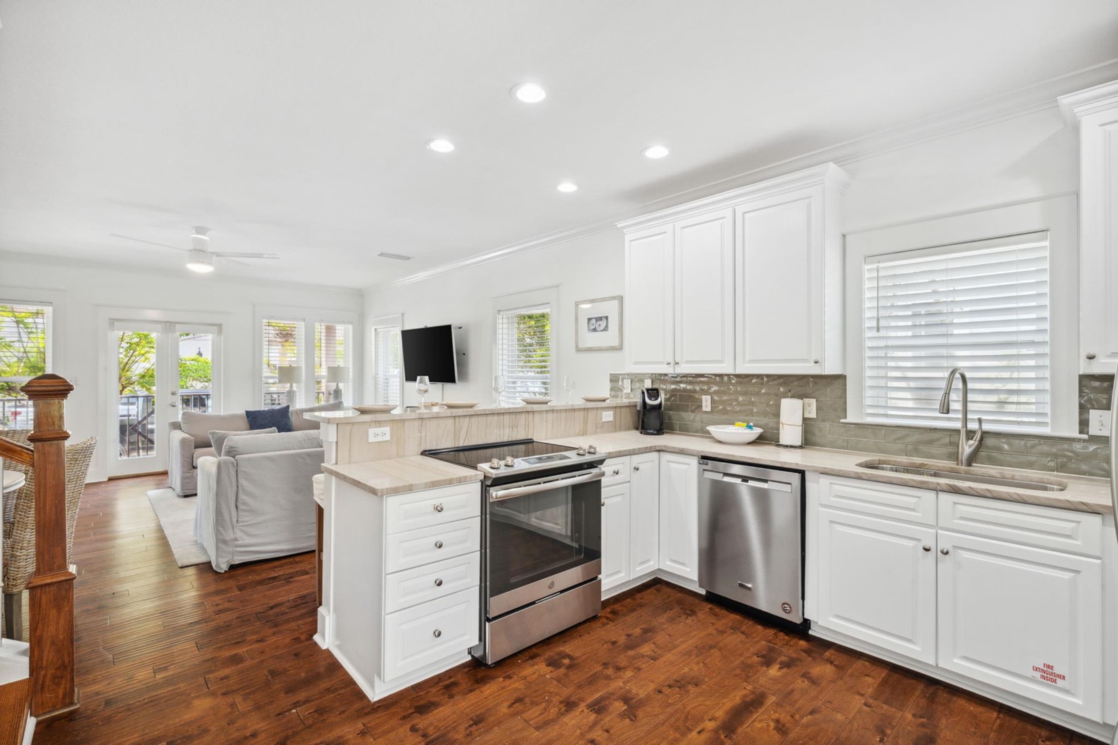 Recently renovated, this home has undergone a complete transformation. With fresh interior paint and new furniture, it offers a modern and stylish living space. The spacious kitchen includes a breakfast bar and beautiful hardwood floors, creating a cozy beach atmosphere. Located on a private corner lot, you'll be just steps away from The Village of South Walton, Peddlers Pavilion, Alys Beach, and Rosemary Beach. Take advantage of the exclusive amenities, a community swimming pool, and convenient tram services to the beach in season.