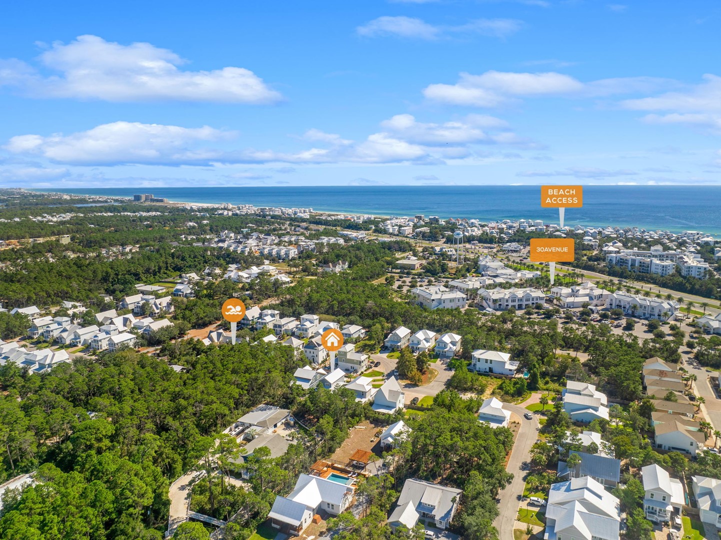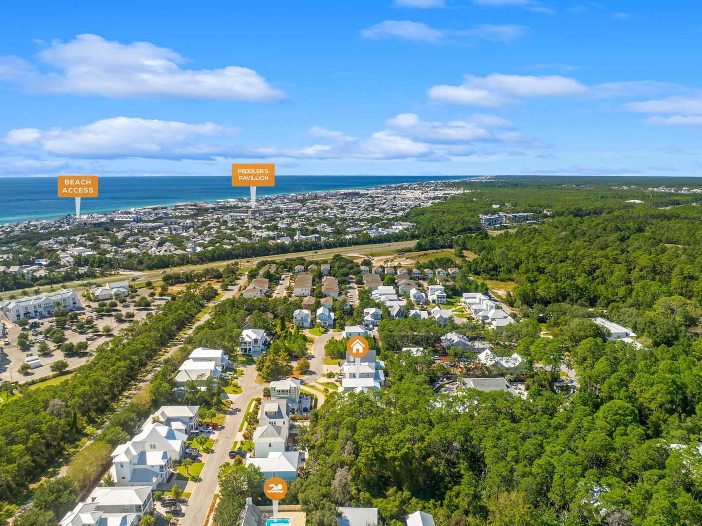 The Preserve at Inlet Beach in Seacrest, FL is a coastal community just a short bike ride to beach access. Guests will enjoy the community pool with pavilion and outdoor fireplace. The community wooden boardwalk & dock provides direct access to Lake Powell, providing quick and easy launching of paddleboards and kayaks.Â