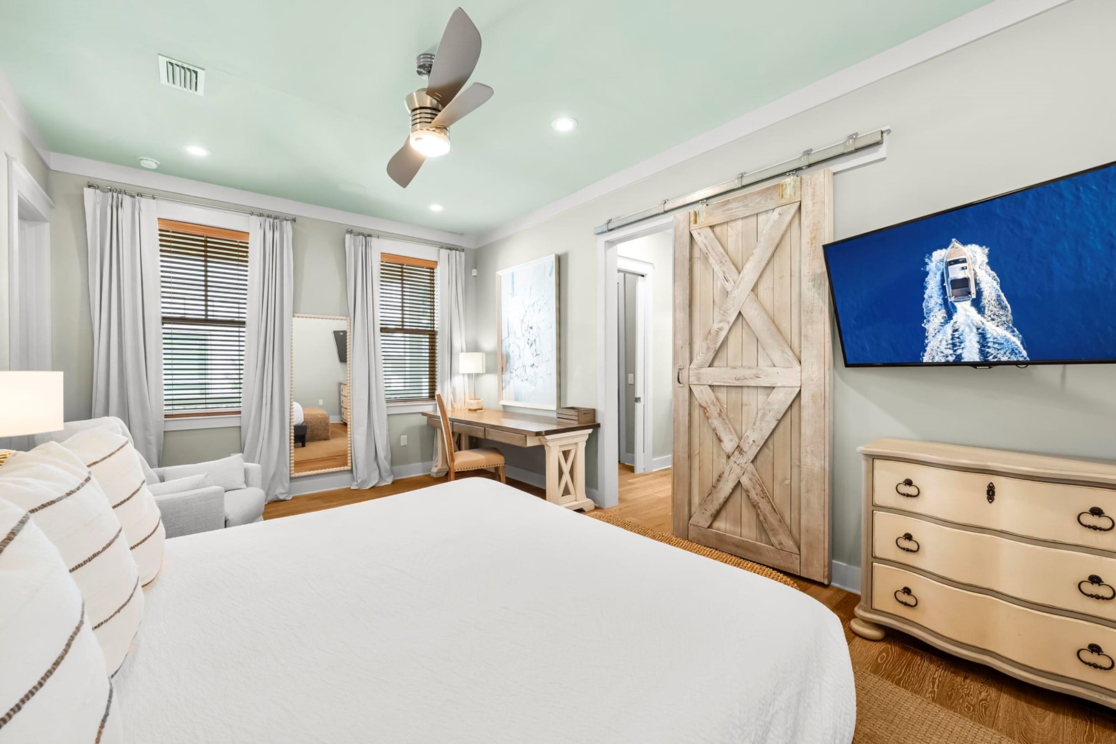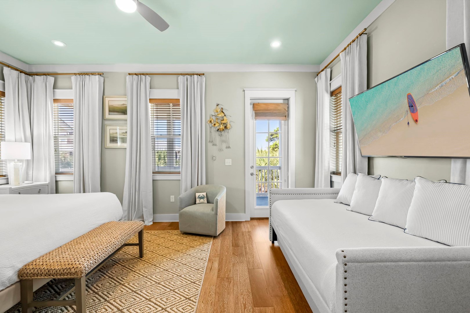* Bedroom 1 - King Bed, Trundle Bed (T/T), Balcony Access, Smart TV, En Suite Bathroom