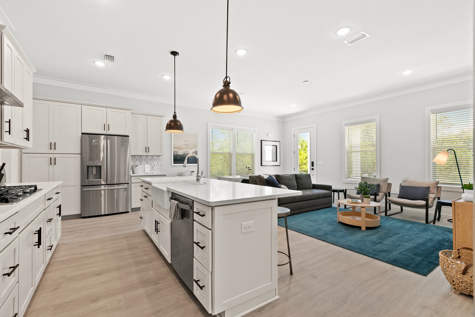 * Gourmet Kitchen features Quartz Countertops & High-end Appliances (potfiller, gas range, convection microwave)