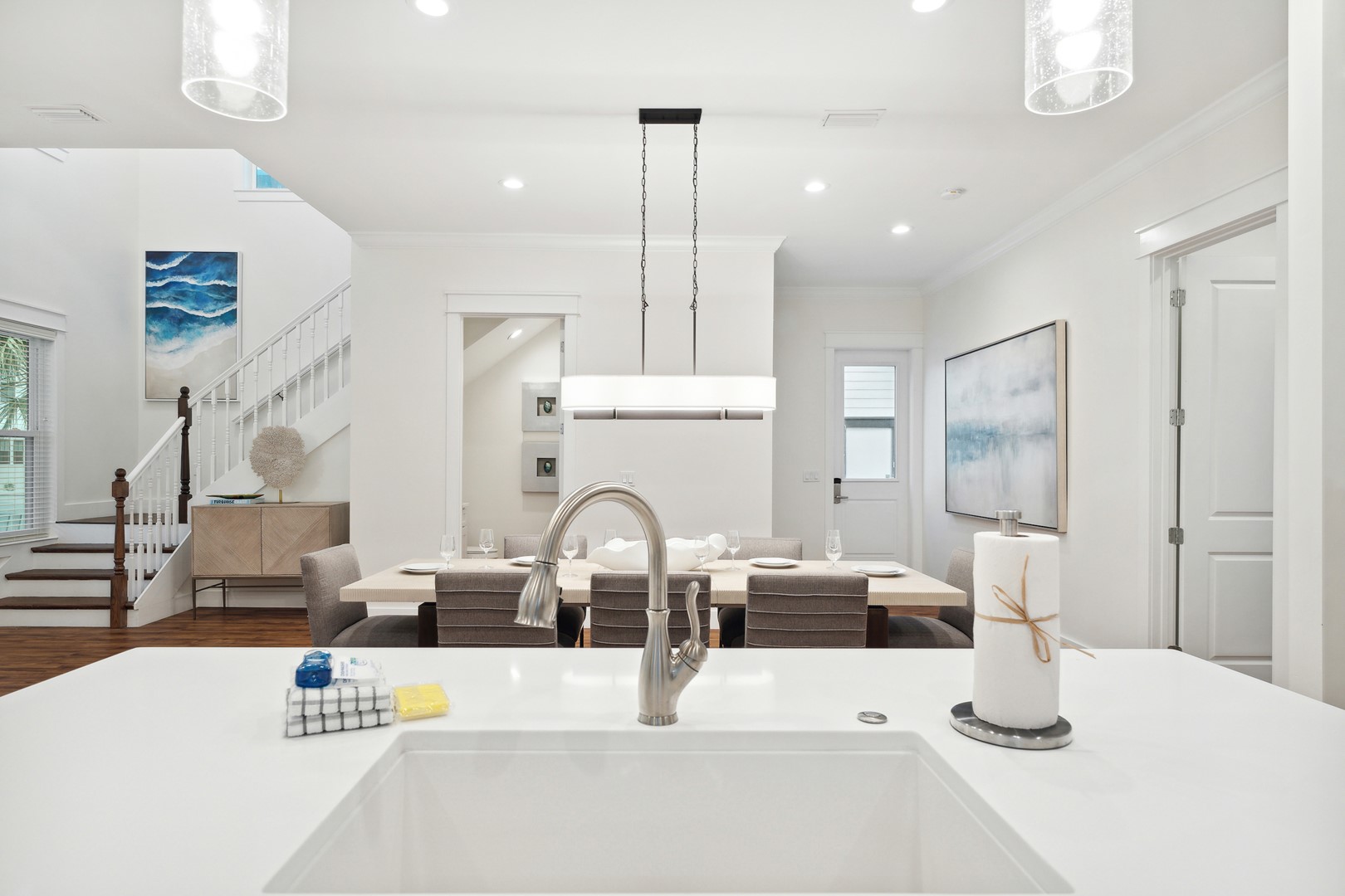 Panhandle Getaways furnishes a few essential items for guests to utilize until they can get to the grocery store. Initial Supplies include: Dishwasher soap, small washing machine powder, each bathroom has amenities (like hotel but NOT restocked) shampoo, conditioner, soap bar and body wash. One roll of toilet paper in each bathroom & one paper towel roll in the kitchen. All bed linens & towels are provided. We encourage guests to bring beach towels for use at the pool and beach.