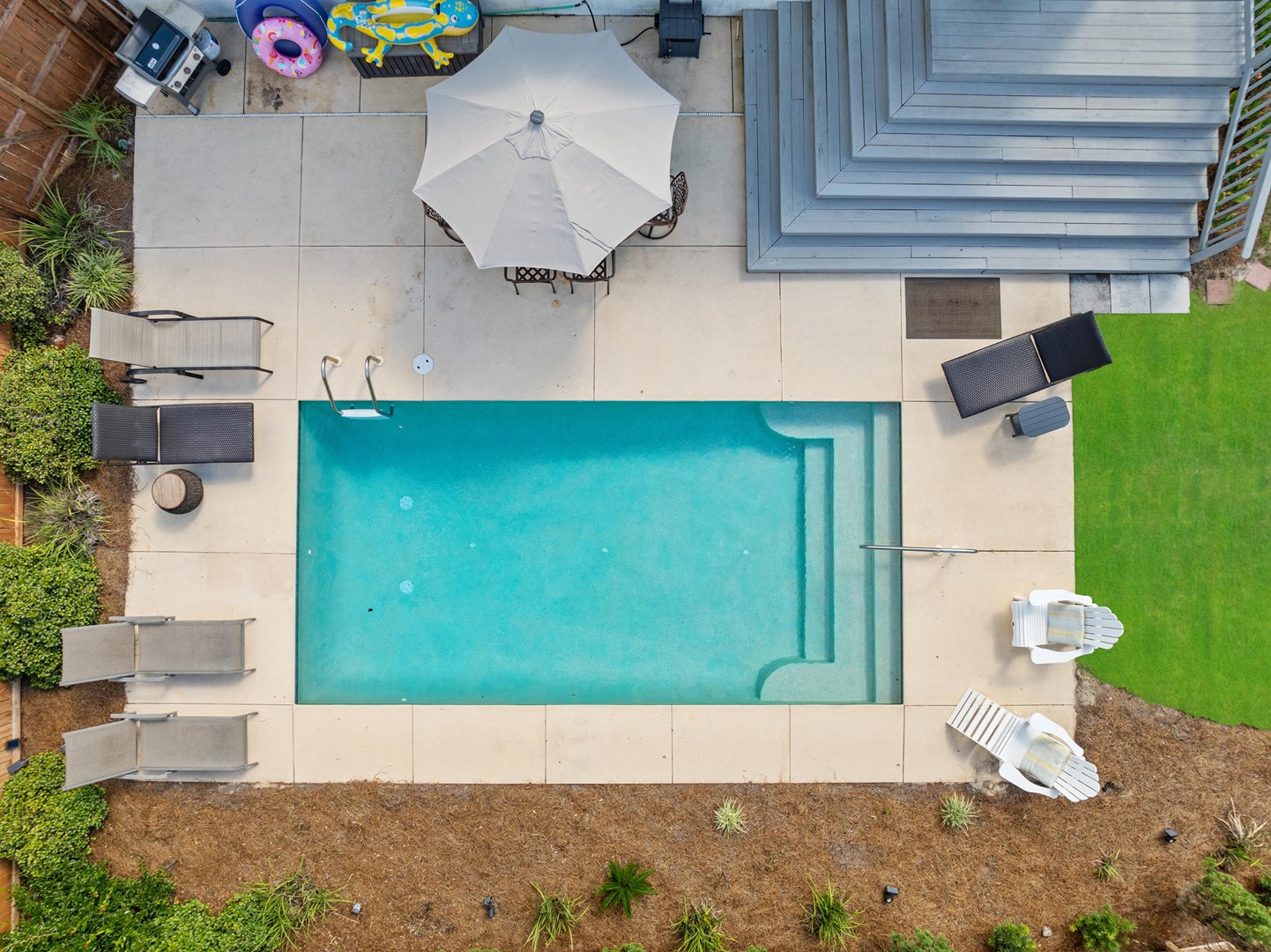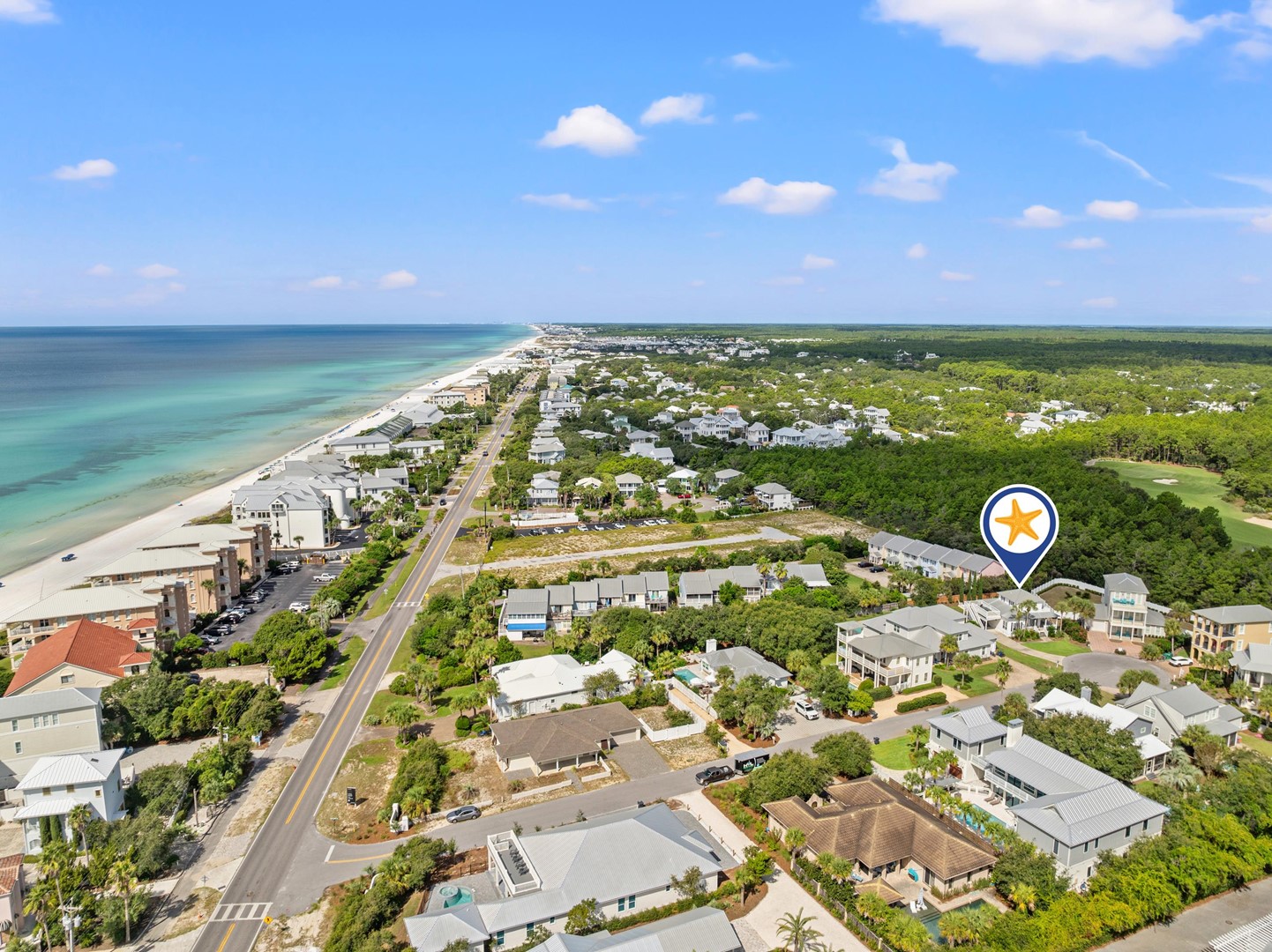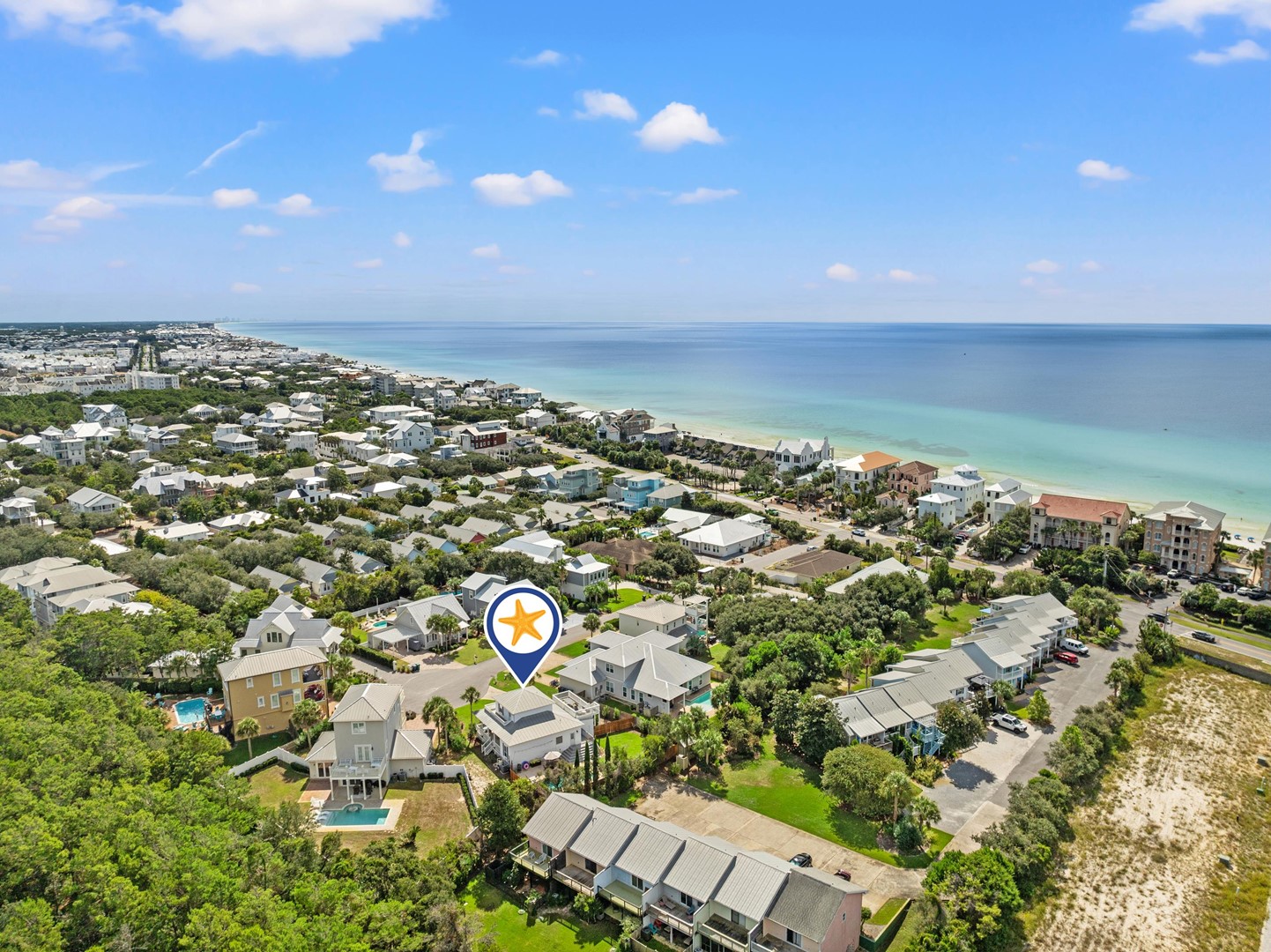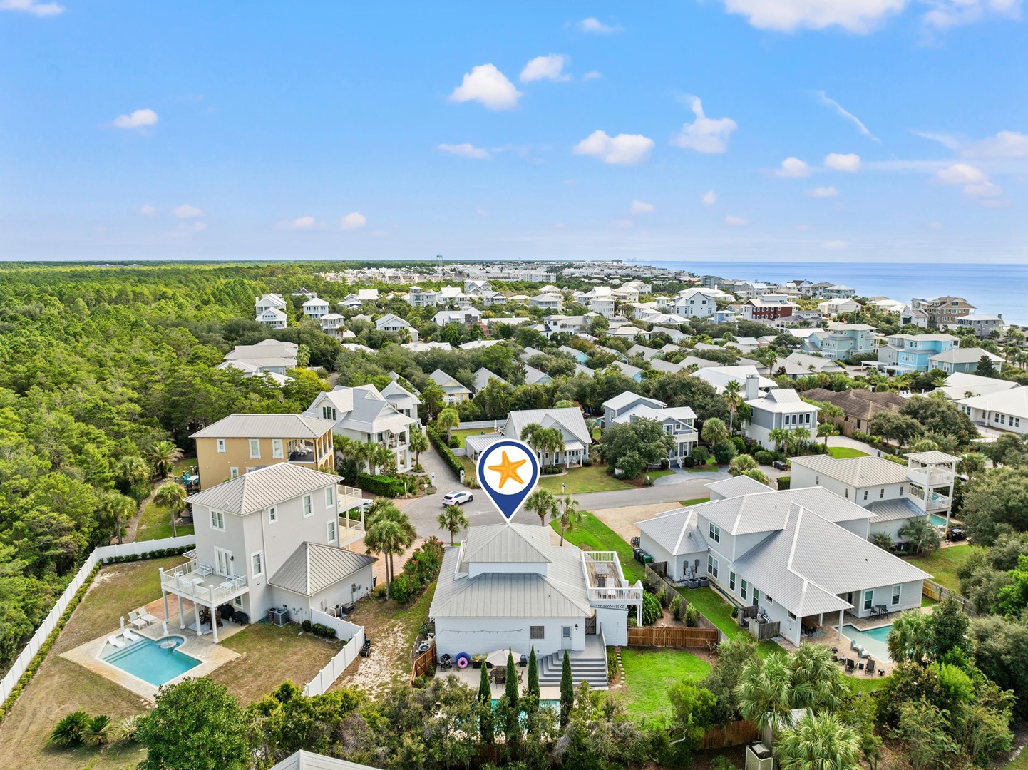 Let me first say that the pool is the star of this property. My kids spent their entire trip mostly in the pool. The house is situated closest to Panama City. Very close to everything and right on 30A. Short little trek to the beach. There are a lot of stairs so I would recommend no carts unless you have men that can lift them. Really close to Publix grocery store and other food places and shops. The house was beau and had a very nice beach vibe. We stayed a week and it was lovely. There is a grill and patio set outside if you wanted to dine in. Everything was clean and fully stocked. Just a really great trip.Alaina W. - Posted: 7/17/2021