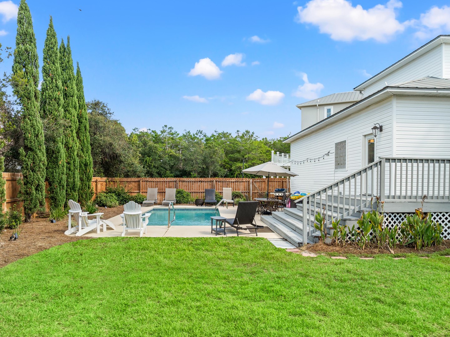 House itself was nice on the inside & the pool was great. Location to the beach was a short walk and we loved being on the calmer end of 30A. I feel a little outside TLC could be used to truly make this property have that cozy homey feel. We spent a lot of time in the backyard when we came in from the beach and in the evenings and it would have been nice if the yard and flower beds could have been kept to provide a nice view while we relaxed poolside.Lori N. - Posted: 8/23/2019