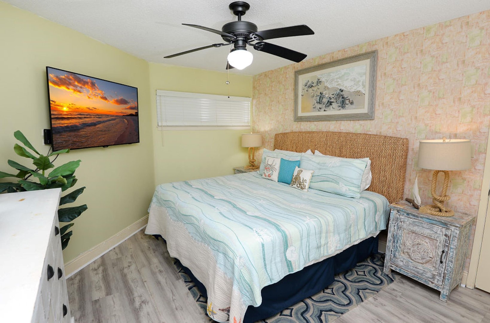• Master bedroom: King bed, Smart TV, private en suite bathroom
