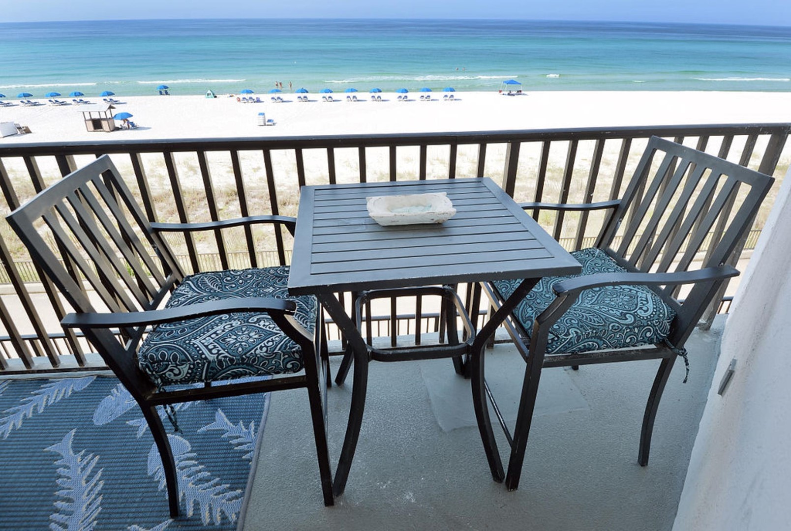 AquaVista 305W by Panhandle Getaways is a beachfront condo in Panama City Beach, FL, offering panoramic Gulf views, beach service, an in-unit arcade game, and resort amenities including a pool, hot tub, and sundeck.