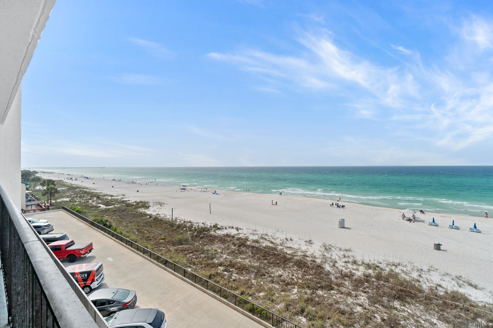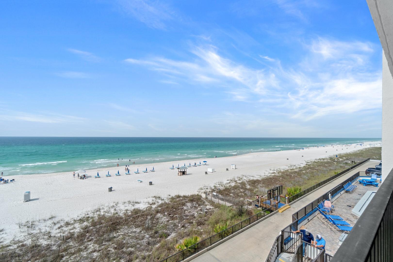 AquaVista 401E by Panhandle Getaways is a beachfront condo located in Panama City Beach, FL, offering stunning Gulf views, a private balcony, and resort amenities that include a pool, hot tub, and sundeck.