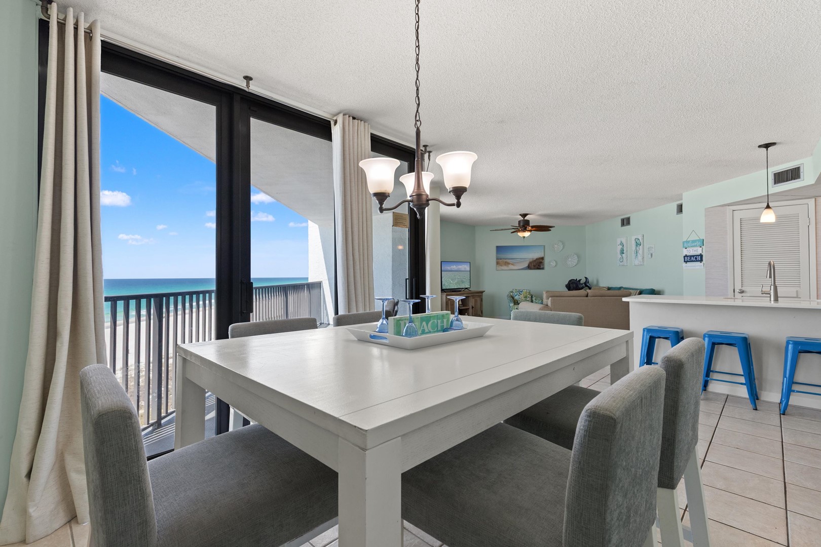 Featuring a massive 19-foot glass wall in the main living space, this fourth-floor retreat showcases panoramic Gulf views that bring the emerald waters and sugar-white sands right into your vacation home.
