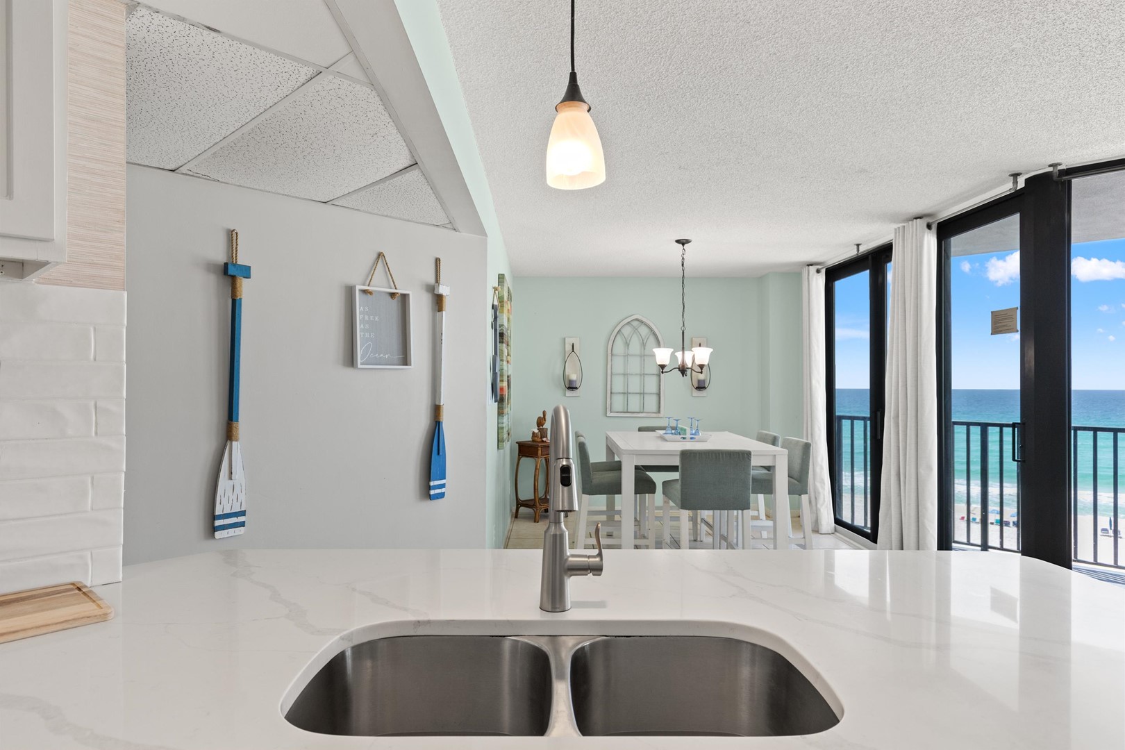 • Full Kitchen: Fully equipped with a breakfast bar and a dining area designed for meals with a view.